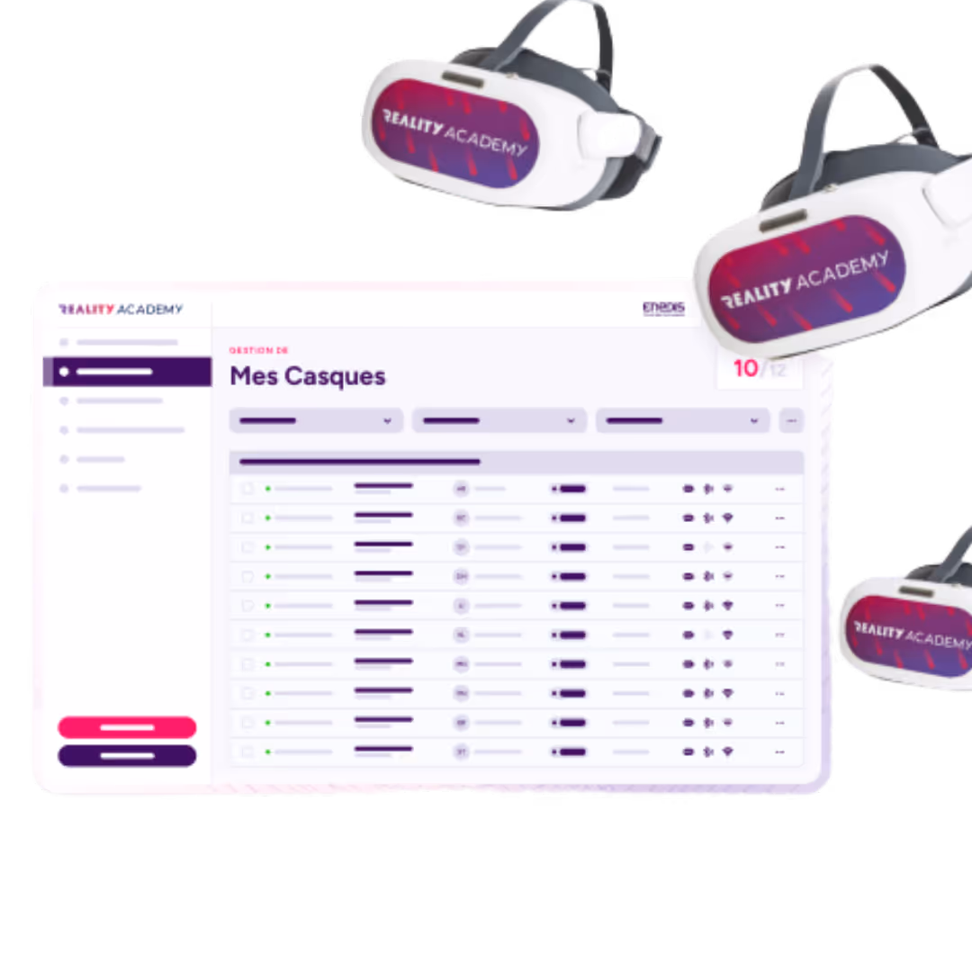 Fort de son expérience terrain et de son expertise en formations XR, Reality Academy a développé une solution logicielle et matérielle propriétaire à destination des entreprises, des organismes de formation et des écoles.