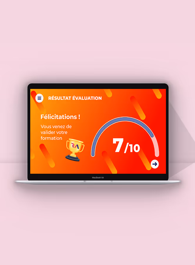 Sur votre LMS : Compatible SCORM 1.2 pour une intégration facile et une gestion autonome des apprenants. Sur Reality LMS : Notre plateforme permet une diffusion simple et rapide, avec un accompagnement et des statistiques avancées.